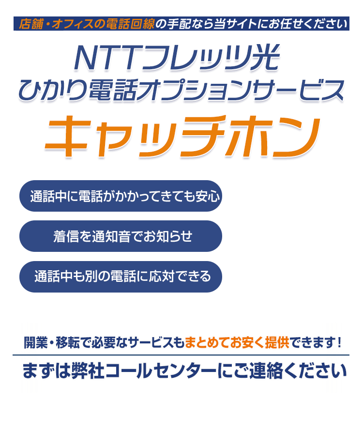キャッチホンは、通話中にかかってきた別の電話を、着信音や通知音でお知らせするNTT西日本 ひかり電話のオプションサービスです。
