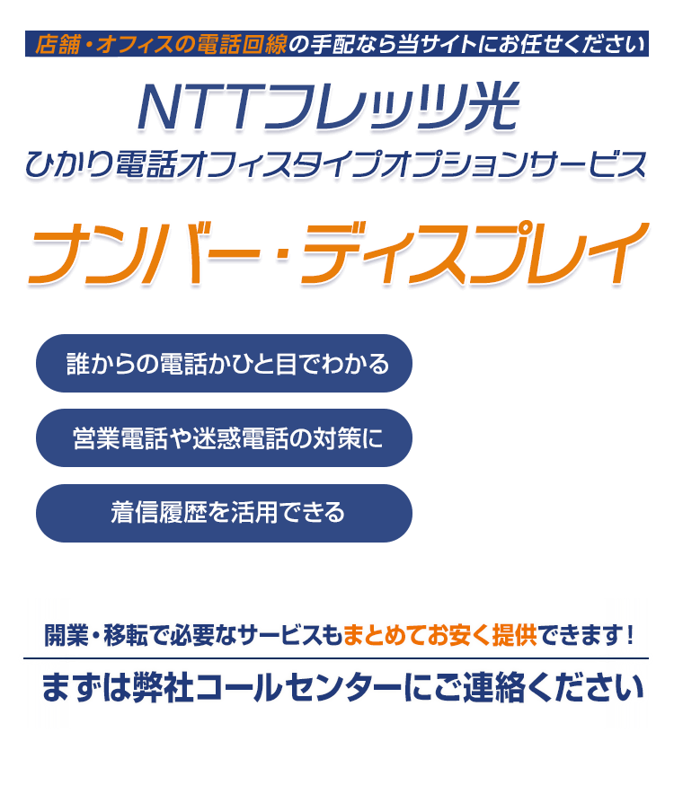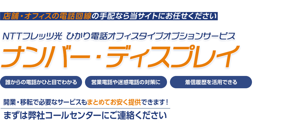 ナンバー・ディスプレイは着信時に相手の電話番号を表示し、得意先やリピーターなどの重要な電話を見逃さない、NTT西日本 ひかり電話のオプションサービスです。