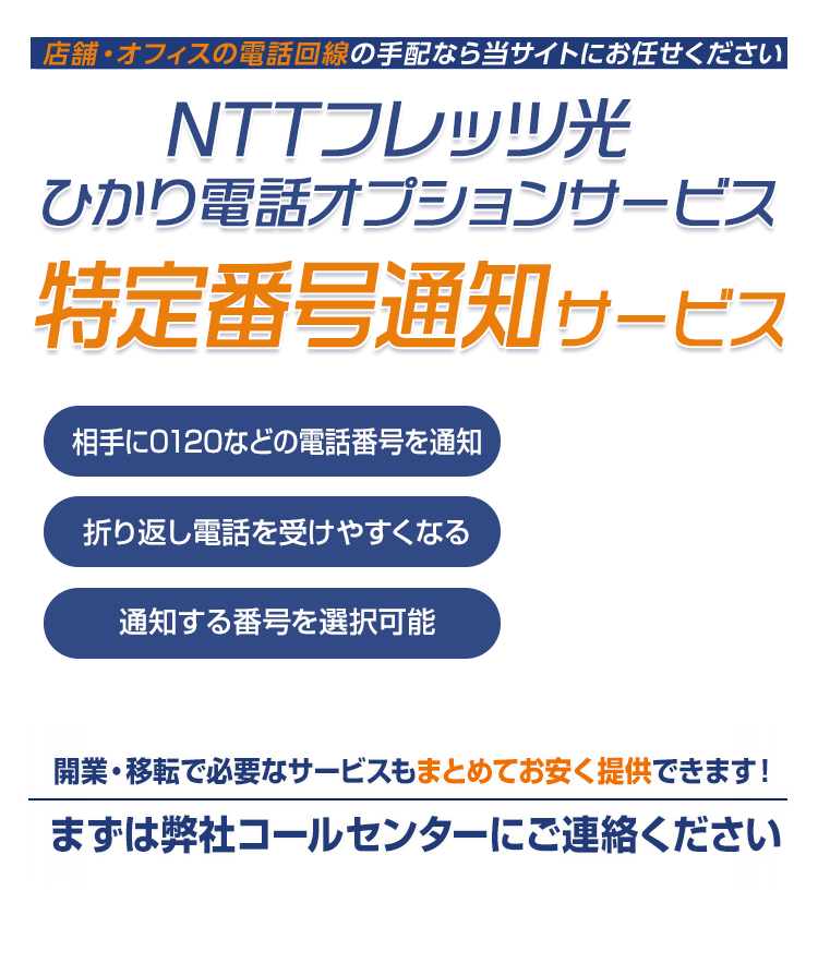 特定通知番号サービスは工事が必要ですか?すでにひかり電話をご利用の方はNTT局舎内における交換機等工事のみとなります。新たにご利用を開始される場合は光回線開通工事が必要となります。