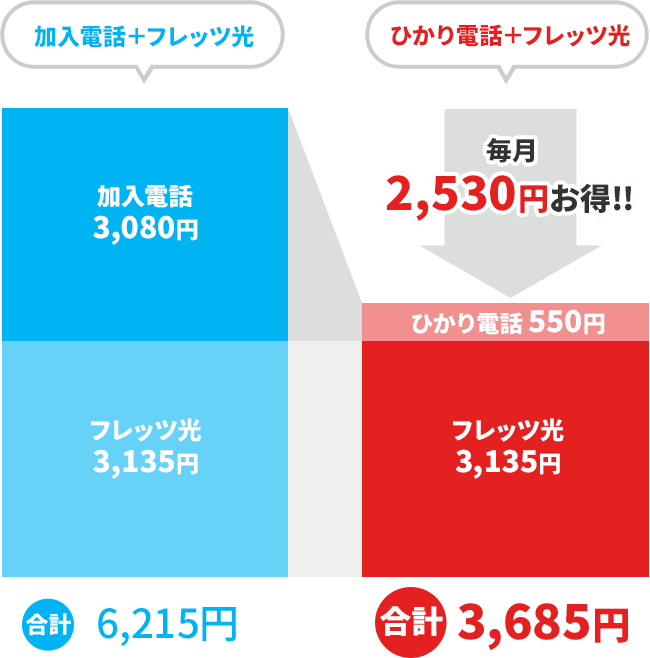 2,750円 → 3,080円となり、ひかり電話がよりお得になります。 - ※ 加入電話は事務用3級取扱所となります