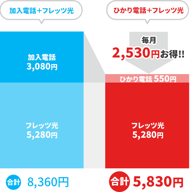 2,750円 → 3,080円となり、ひかり電話がよりお得になります。 - ※ クロス月額割適用料金となります。